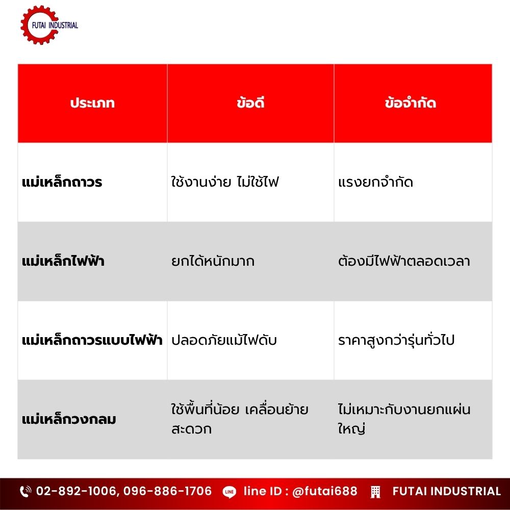 การเลือกแม่เหล็กยกที่เหมาะสมไม่เพียงช่วยเพิ่มประสิทธิภาพในการผลิต แต่ยังช่วยลดการสึกหรอของเครื่องมือและเพิ่มความปลอดภัยให้กับพนักงาน แม่เหล็กยกไม่ใช่แค่เครื่องมือทั่วไป แต่เป็นเทคโนโลยีที่ช่วยให้กระบวนการผลิตในโรงงานมีประสิทธิภาพและปลอดภัยมากขึ้น ไม่ว่าจะเป็นงานยกเหล็ก ท่อ หรือแผ่นโลหะ แม่เหล็กยกจาก บริษัท ฟู่ไท้ อินดัสเทรียล จำกัด เป็นผู้จัดจำหน่ายอุปกรณ์อุตสาหกรรมคุณภาพ รวมถึง แม่เหล็กยกชิ้นงาน ครบทุกรุ่น ทั้งแบบถาวร แบบไฟฟ้า และแบบถาวรด้วยไฟฟ้า บริษัทให้บริการตั้งแต่การให้คำปรึกษา เลือกสเปกที่เหมาะสม ไปจนถึงบริการหลังการขาย พร้อมทีมเทคนิคที่เข้าใจงานจริงในภาคอุตสาหกรรม