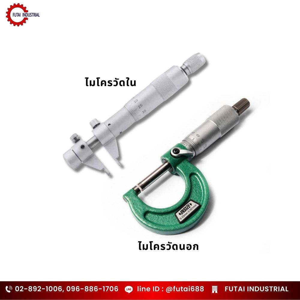 - Inside Micrometer: สำหรับงานวัดรูในที่มีความลึกและแคบ