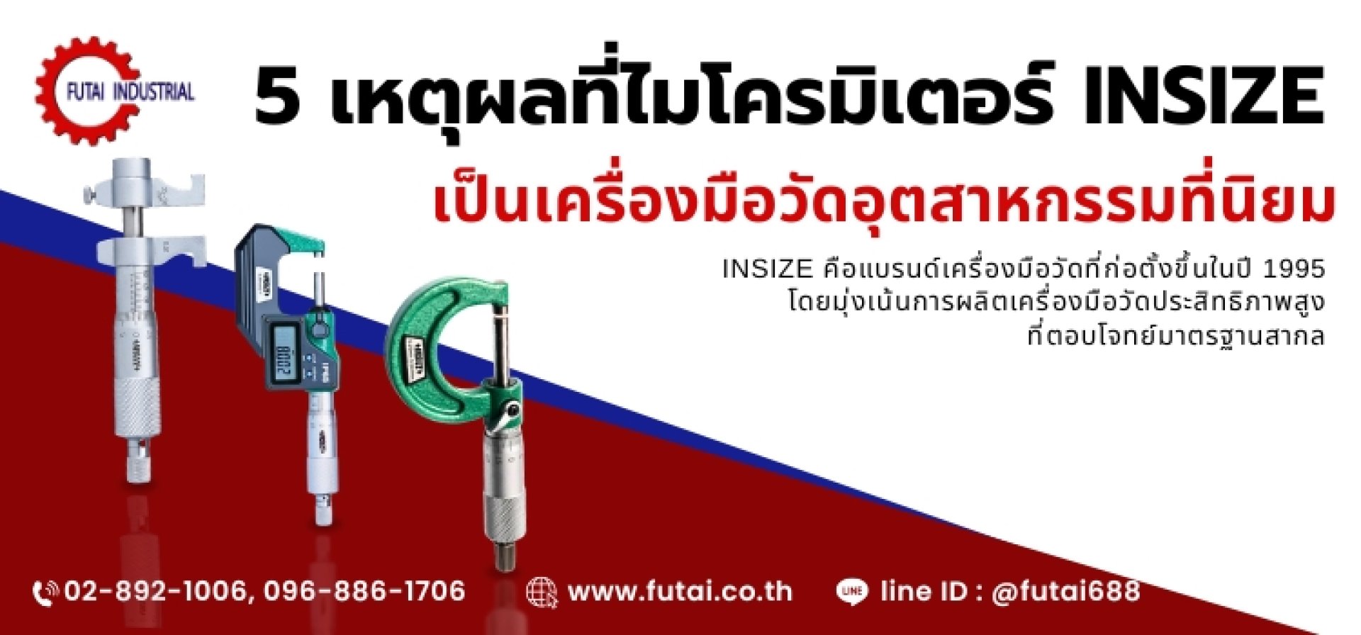 บริษัท ฟู่ไท้ (ประเทศไทย) จำกัด คือผู้เชี่ยวชาญด้านเครื่องมือวัดอุตสาหกรรมที่เข้าใจความต้องการของภาคการผลิตอย่างแท้จริง หากคุณกำลังมองหาไมโครมิเตอร์ INSIZE หรือเครื่องมือวัดคุณภาพสูงเพื่อยกระดับมาตรฐานการผลิตของคุณให้มีประสิทธิภาพมากขึ้น ฟู่ไท้พร้อมเป็นพาร์ทเนอร์ที่คุณไว้วางใจได้ ติดต่อทีมงานของเราได้วันนี้ เพื่อสอบถามข้อมูลสินค้า รายละเอียดรุ่น หรือขอคำแนะนำในการเลือกเครื่องมือวัดที่เหมาะกับหน้างานของคุณ